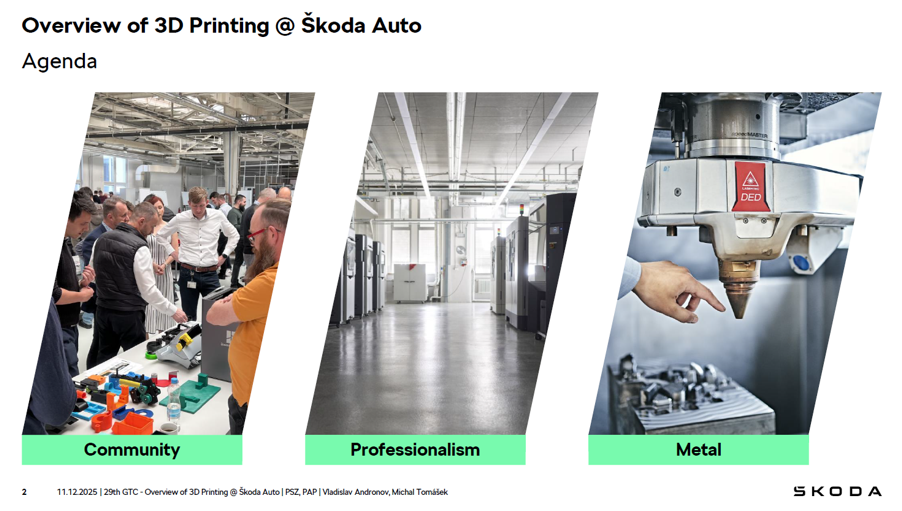 Úspěšné aktivní vystoupení a účast s příspěvkem „Overview of 3D Printing @Škoda Auto“ včetně fyzické účasti v celém programu. Dále networking a výměna zkušeností s kolegy z ostatních značek jako AUDI AG, Porsche, Everllence, Lamborghini v rámci tématu aditivní výroby.